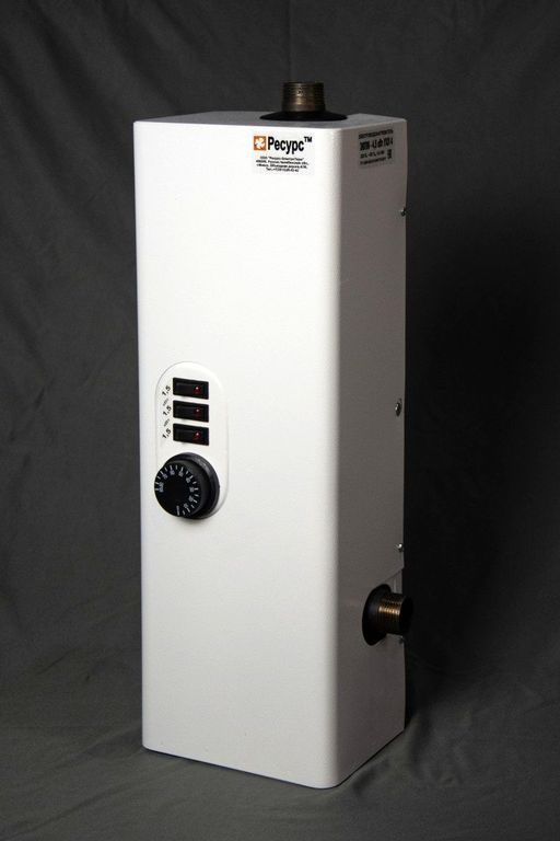 Электрокотёл состоит из стального корпуса, внутри которого находится резервуар с трубчатыми электронагревателями. Водонагреватель имеет встроенный пульт управления, предназначенный для переключения мощности и регулирования температуры нагрева теплоносителя.