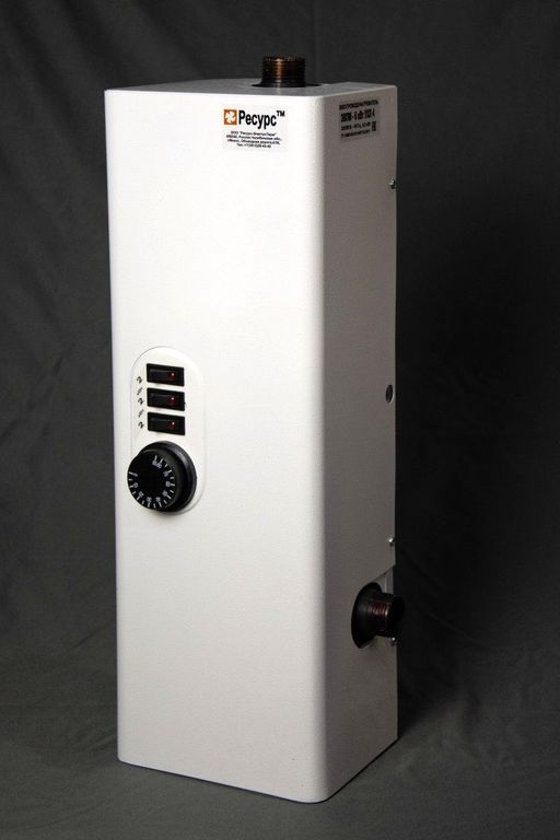 Электрокотёл состоит из стального корпуса, внутри которого находится резервуар с трубчатыми электронагревателями. Водонагреватель имеет встроенный пульт управления, предназначенный для переключения мощности и регулирования температуры нагрева теплоносителя.
