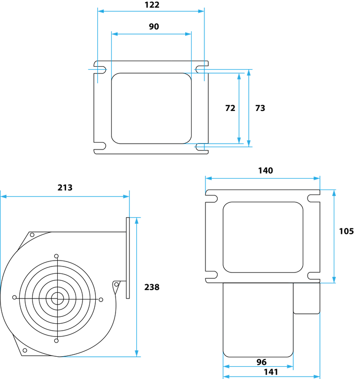Вентилятор WPA-140 предназначен для наддува воздуха в котлах ЦО с мощностью до 70 кВт