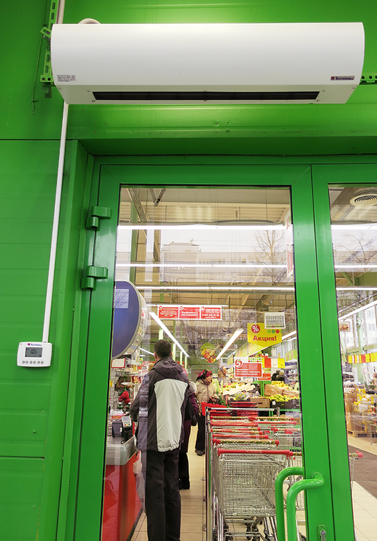 Воздушная завеса Оптима для проемов высотой от 2 до 3,5 м. Верхнее всасывание воздуха, обеспечивает чистоту передней панели.
